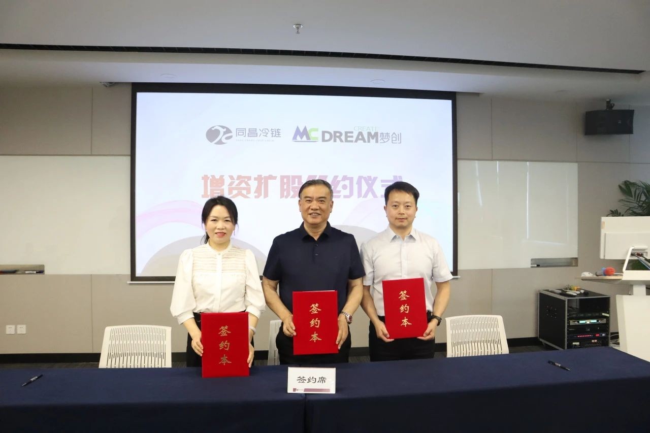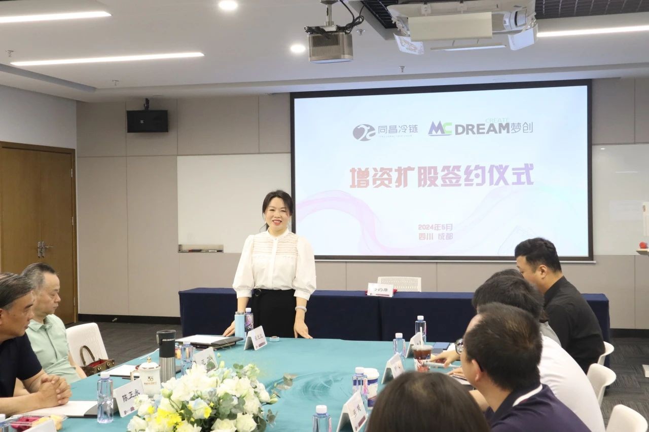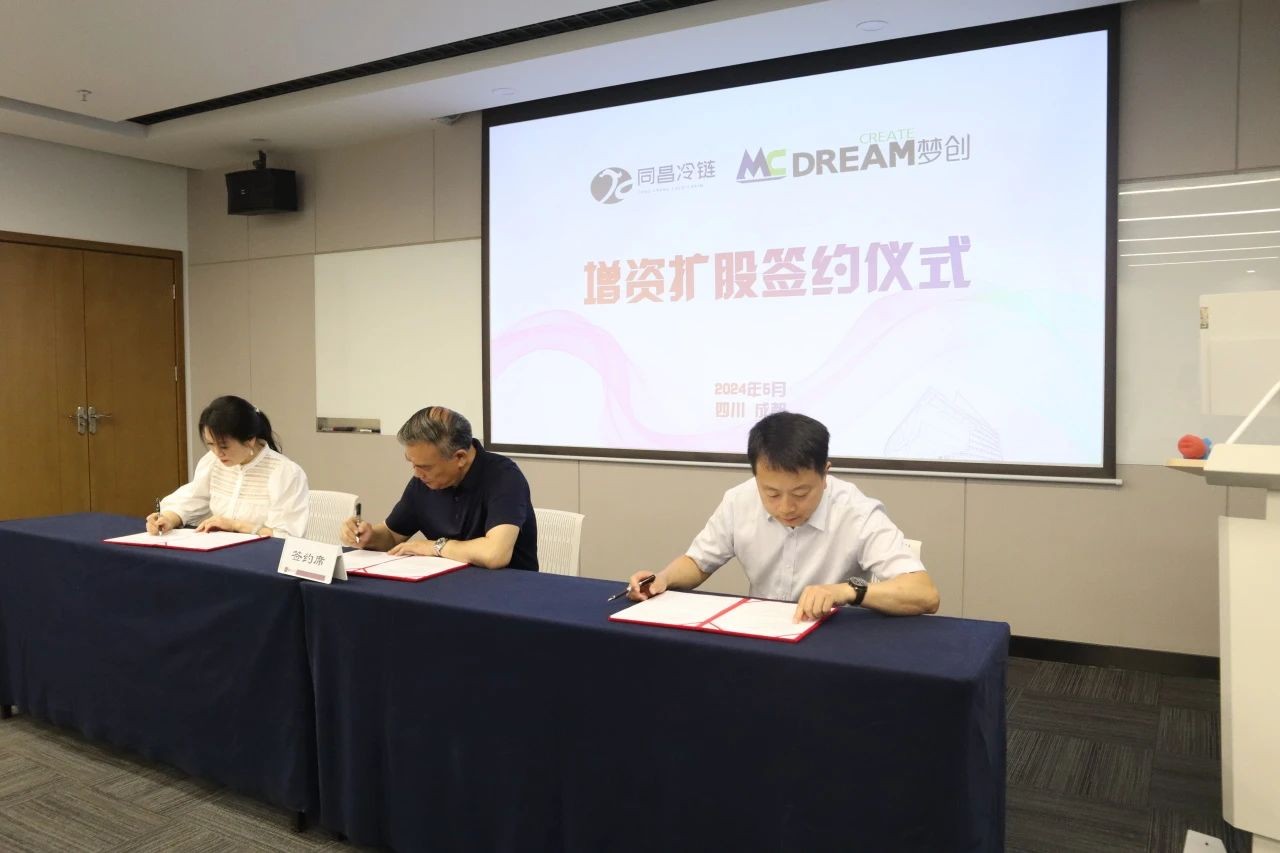 2024年5月14日上午同昌冷鏈與四川夢創商貿有限公司在同昌集團會議室舉行了隆重的增資擴股簽署儀式。同昌集團董事長陳正永、集團副總范華、陳昭陽、同昌冷鏈總經理崔光蘭,夢創商貿總經理張健、副總張添鑫及雙方核心團隊成員出席了本次簽約儀式。此次合作的最終達成是雙方業務發展的必然選擇,是夢創商貿做大做強與市場開拓的有益助力,更是同昌集團打造平臺化建設的重要舉措。雙方力爭通過深度合作,能夠在多層次、多領域實現資源共享、互利共贏的良好局面。