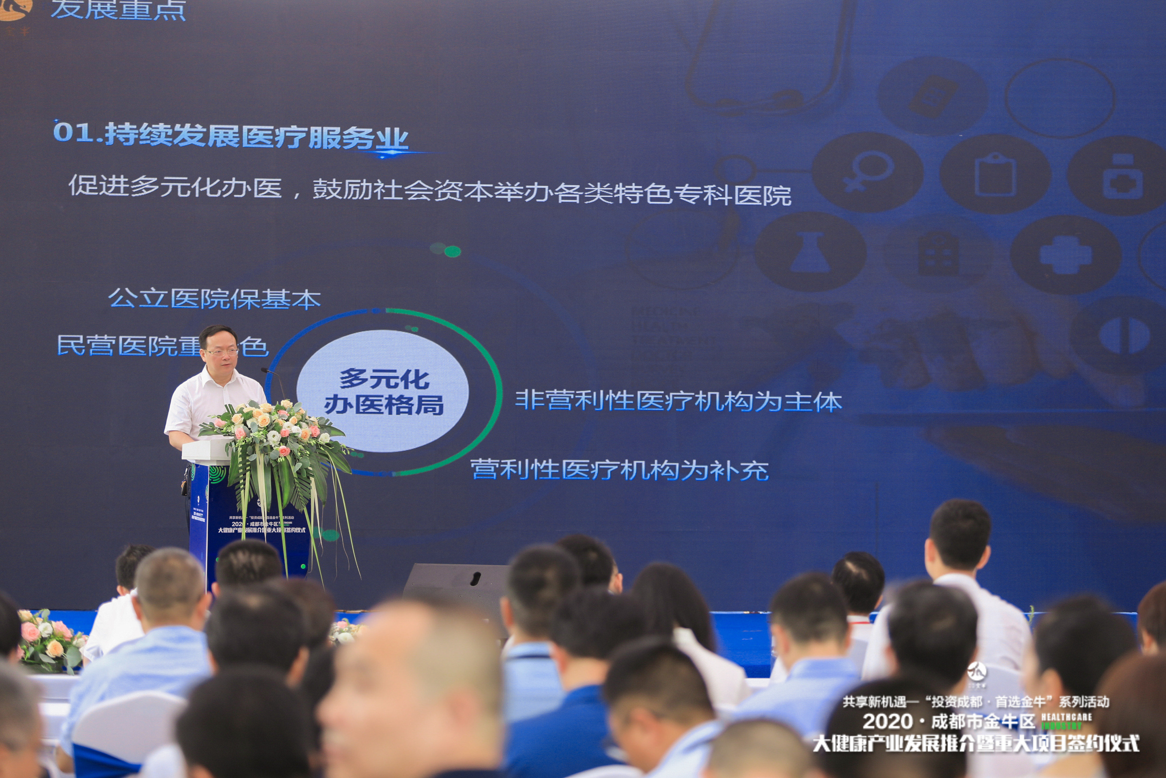 金牛區周區長對健康產業投資環境進行了推介。作為“成渝地區雙城經濟圈”中的經濟大區之一,金牛區將依托優勢資源,搶占機遇,以產業功能區為載體,打造國內特色鮮明、優勢突出的大健康產業基地。營造產業發展新場景,塑造“健康金牛”品牌。
