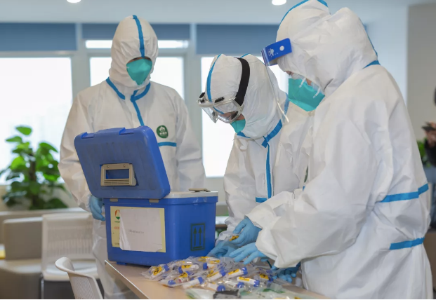 圖為同昌醫學檢驗所檢驗人員對集團總部全體員工進行核酸檢測采樣