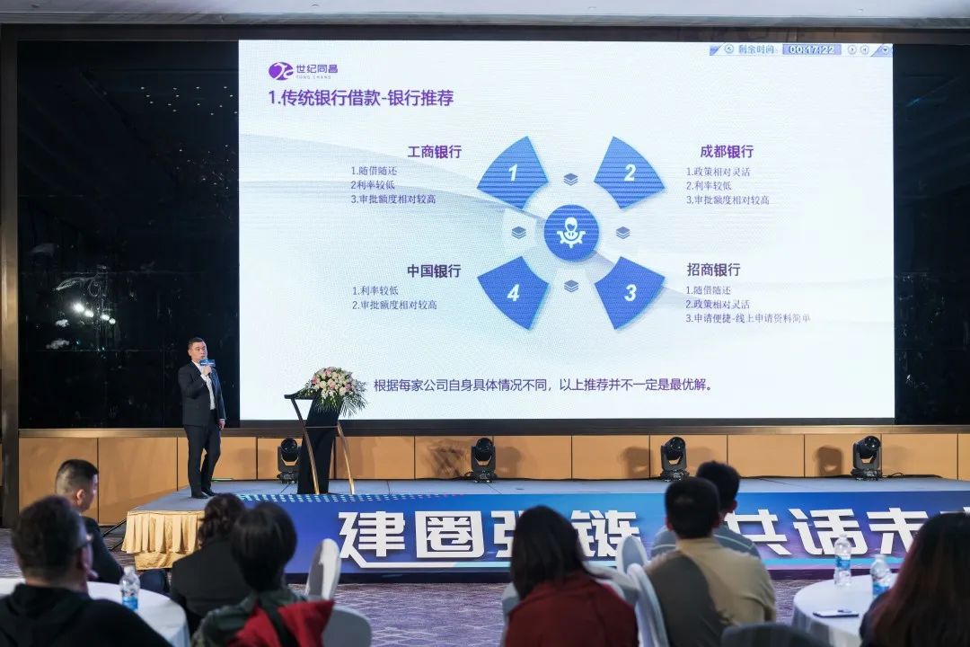 隨后,同昌集團旗下四川同昌冷鏈醫藥物流有限責任公司總經理崔光蘭女士、四川世紀同昌科技發展有限公司總經理閔子強先生、成都同昌醫學檢驗所有限公司總經理譚輝先生先后登臺,結合各自主營業務及服務優勢向現場嘉賓形象展示了世紀同昌的綜合服務能力,集團財務中心經理羅文博從企業融資角度就獲取銀行低息貸款、應收賬款盤活、降低壞賬風險等方面與現場嘉賓進行了深入的交流。
