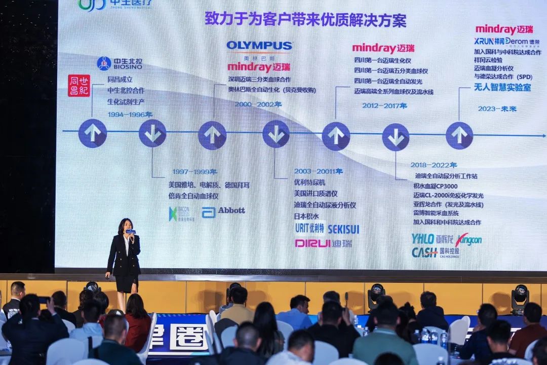 在產品宣介環節,亞輝龍市場部西南區總監陳萍、中生北控西區總監王紅娟、迪瑞醫療四川省區經理雍帥東、邁瑞醫療成都分公司IVD市場經理王陽、中生醫療渠道部經理趙鳳瀾分別為大家分享了廠家產品介紹和“世紀同昌2023年分銷政策宣講”。